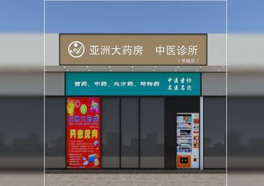 亚洲大药房牌匾门前设计效果